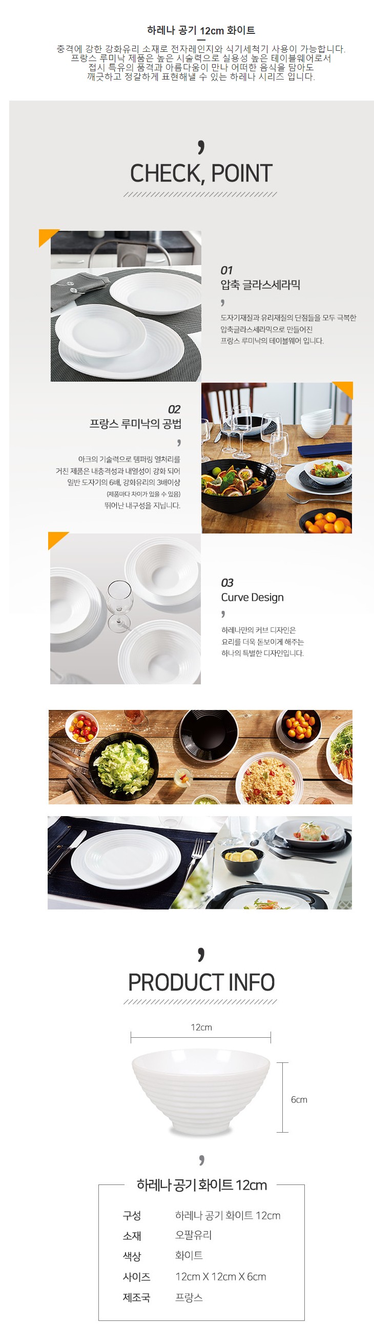 루미낙 하레나공기 화이트12cm 6P(1박스)