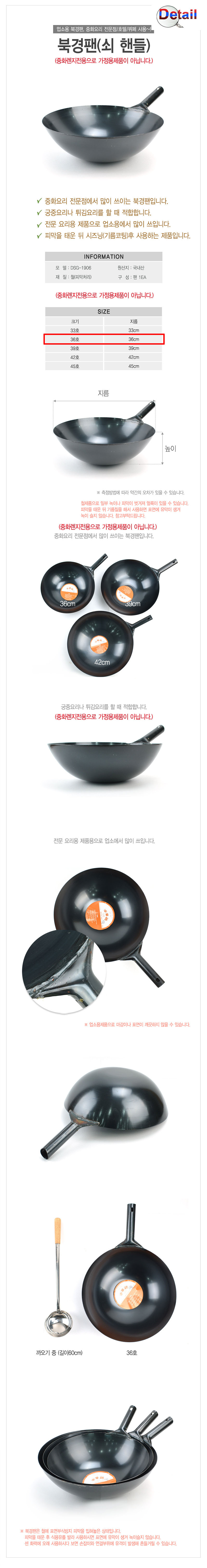 쇠핸들 북경팬 볶음웍 궁중팬-36cm