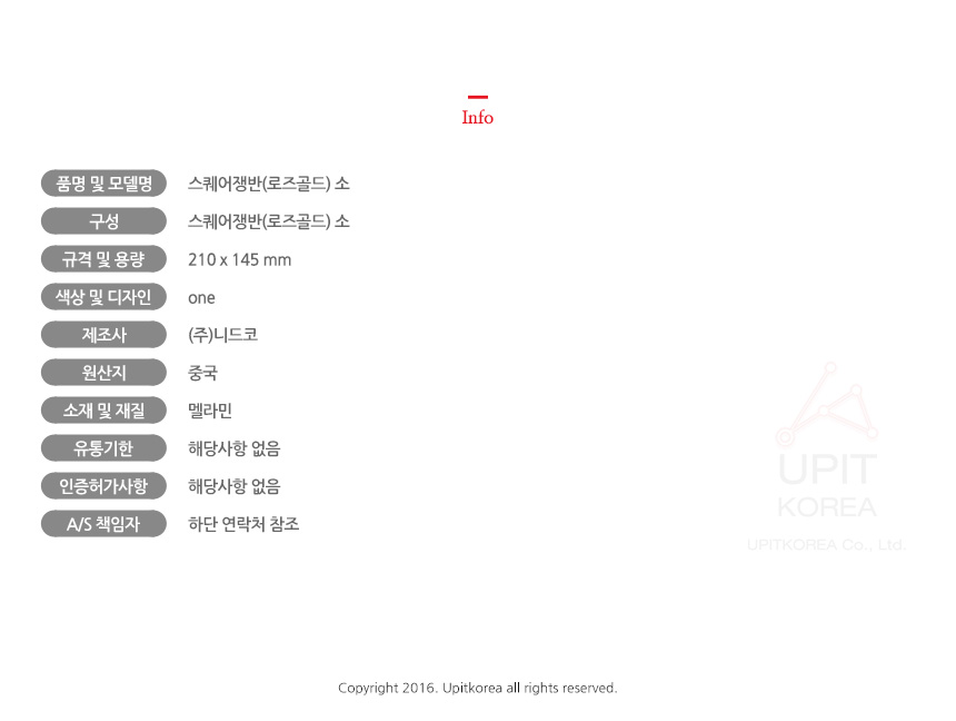 스퀘어쟁반(로즈골드) 소 8083 이미지/