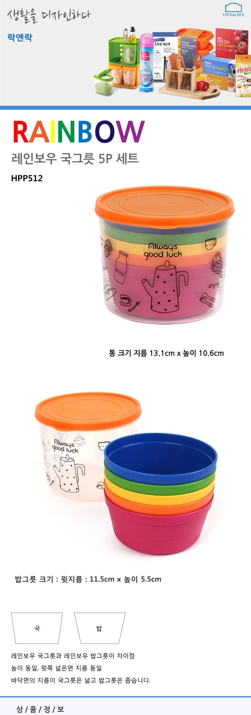 락앤락 레인보우 국그릇 세트 5개입 공기 대접 식기