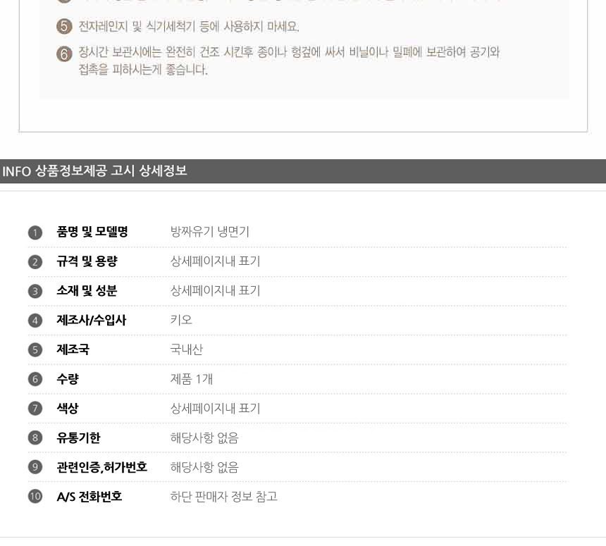 A/S책임자와 전화번호 또는 소비자 상담 관련 전화번호 상품상세설명에 표기