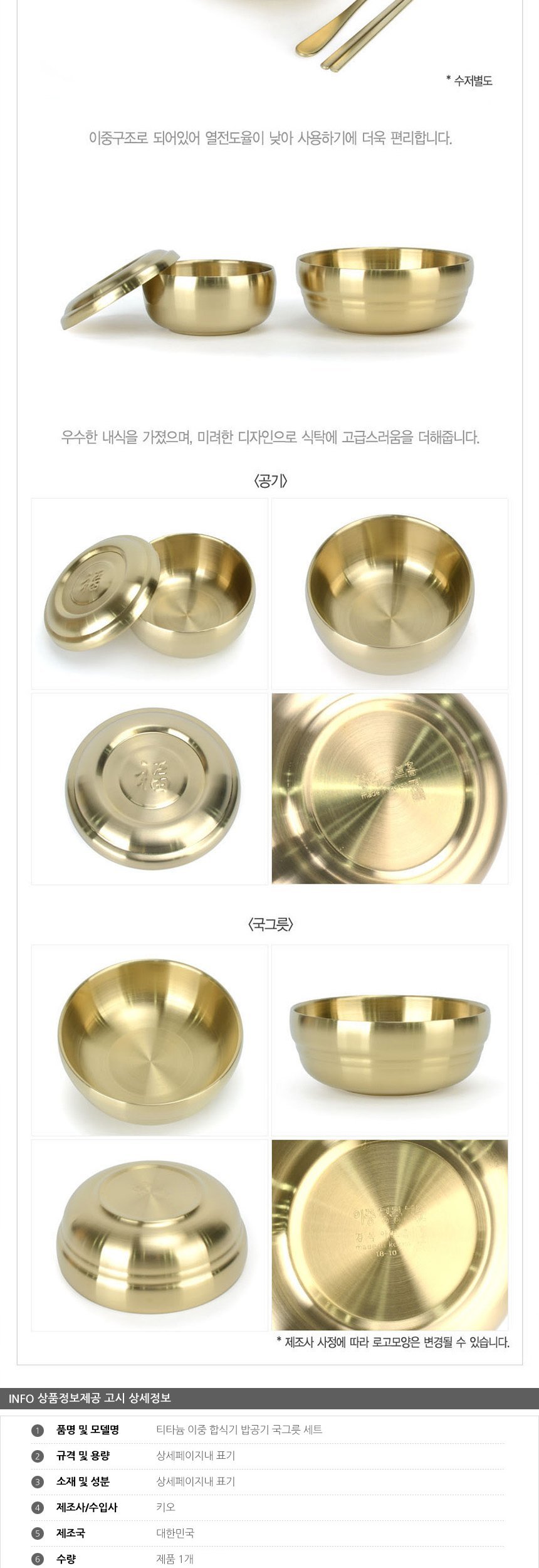 티타늄 이중 합식기 밥공기 국그릇 세트 이미지/