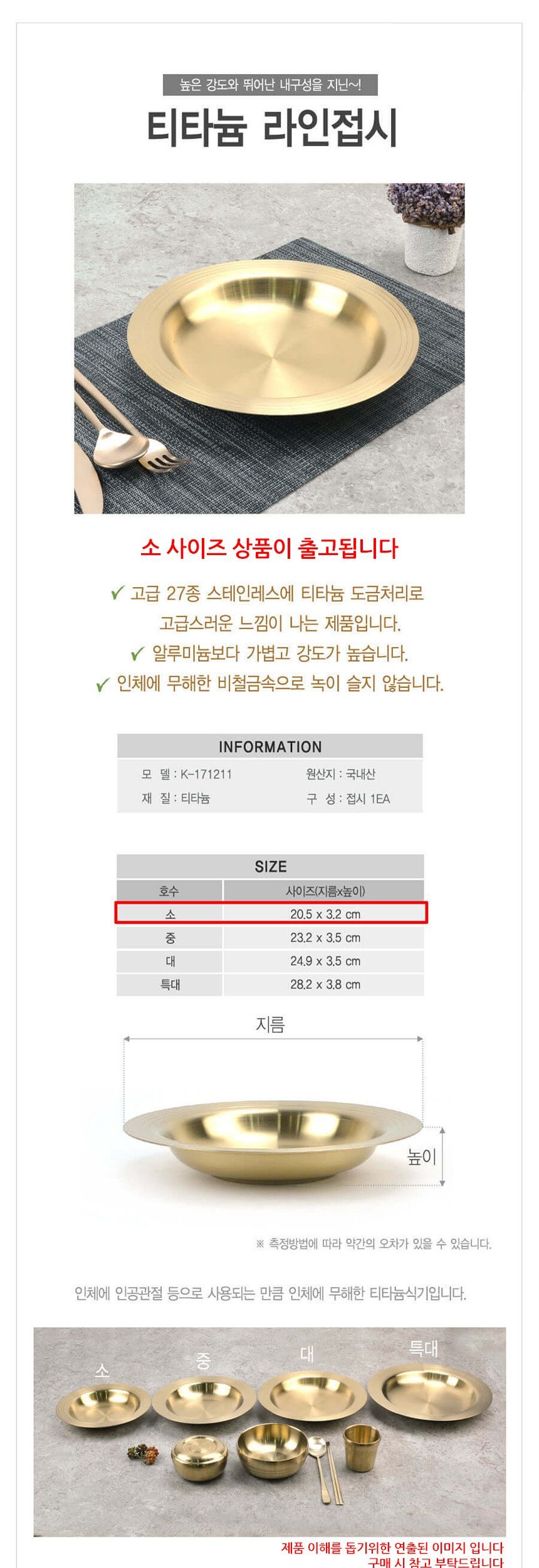 티타늄 라인 원형접시 소형 20cm 이미지/
