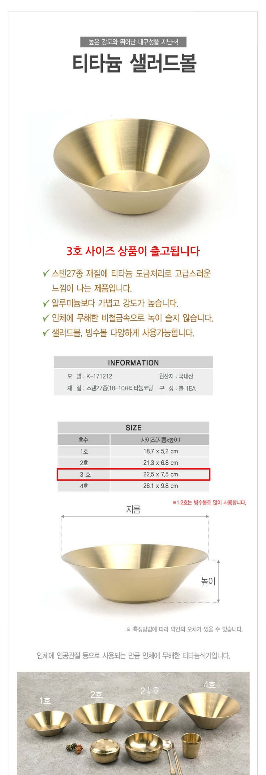 티타늄 원형 샐러드볼 3호 22cm 이미지/