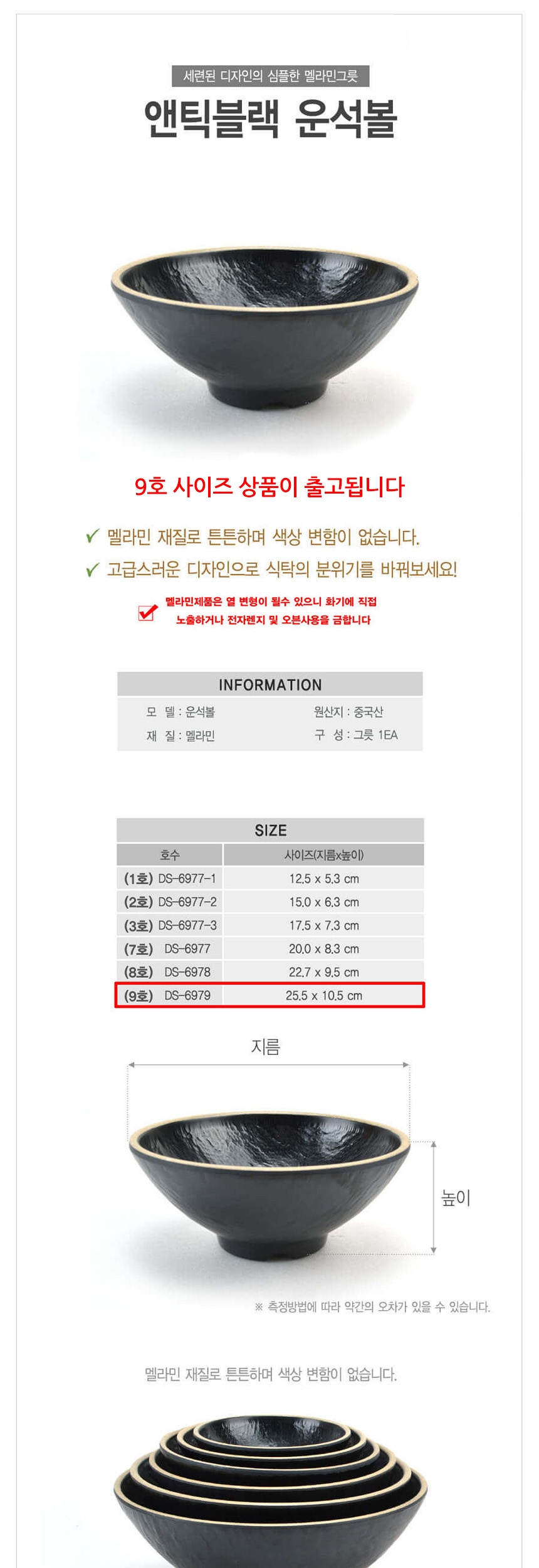 멜라민 운석볼 비빔그릇 대접 앤틱블랙 9호 25cm 이미지/
