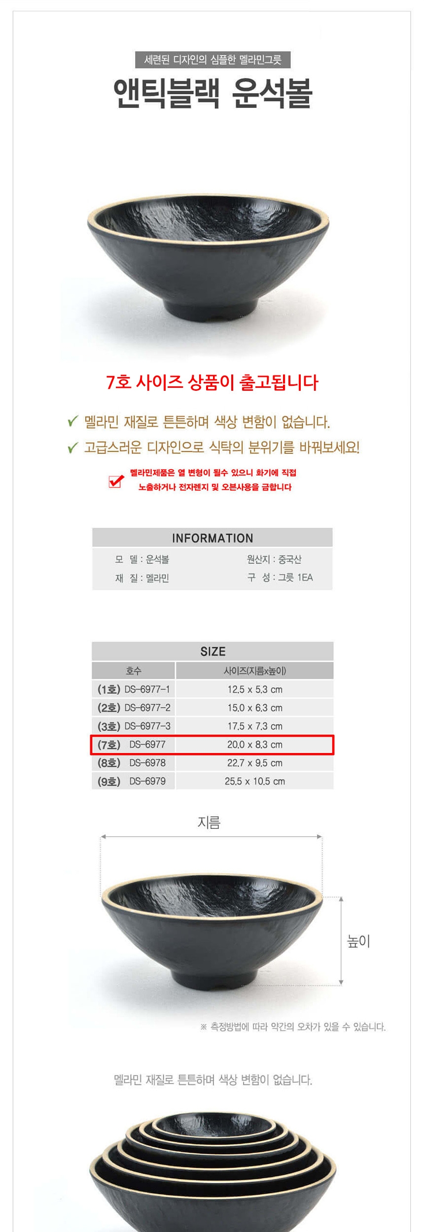 멜라민 운석볼 비빔그릇 대접 앤틱블랙 7호 20cm