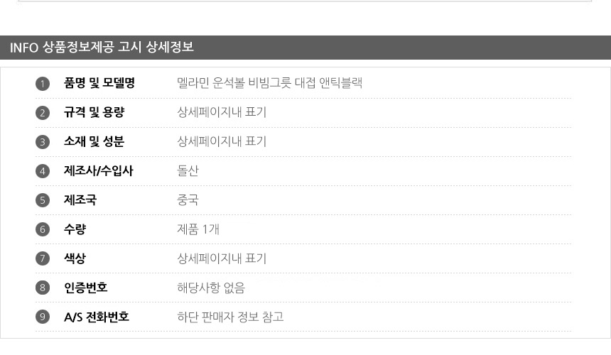 품명 상품상세설명에 표기