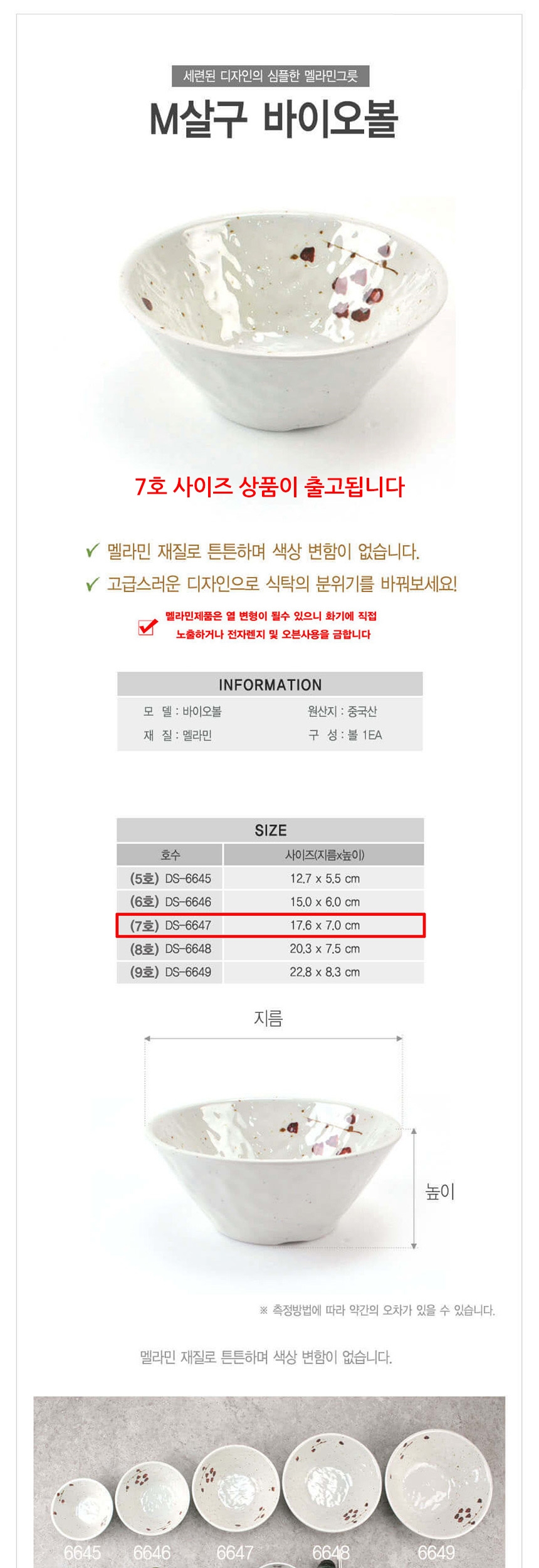 업소용 멜라민 바이오볼 대접 살구 7호 17cm 이미지/