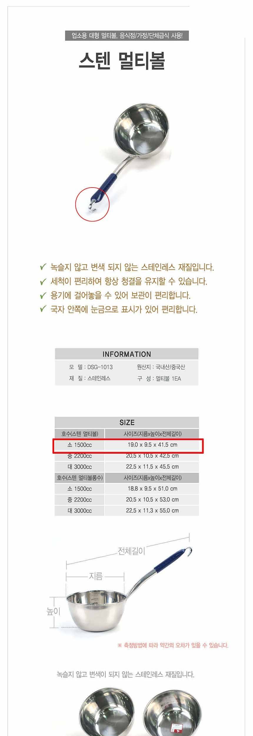 스텐 멀티볼 배식국자 소형 1500cc 이미지/