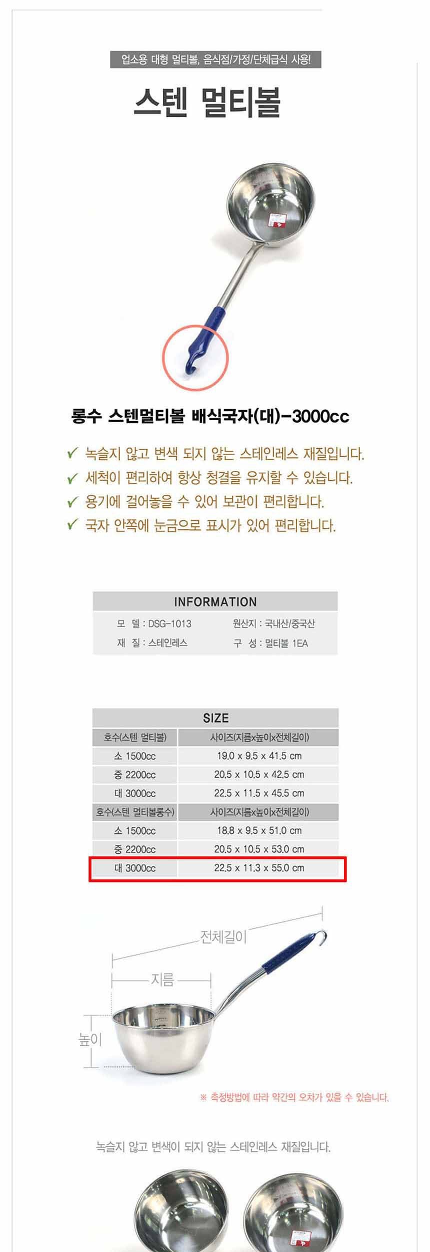 스텐 멀티볼 긴손잡이 대형국자 대형 P핸들 3000cc 이미지/