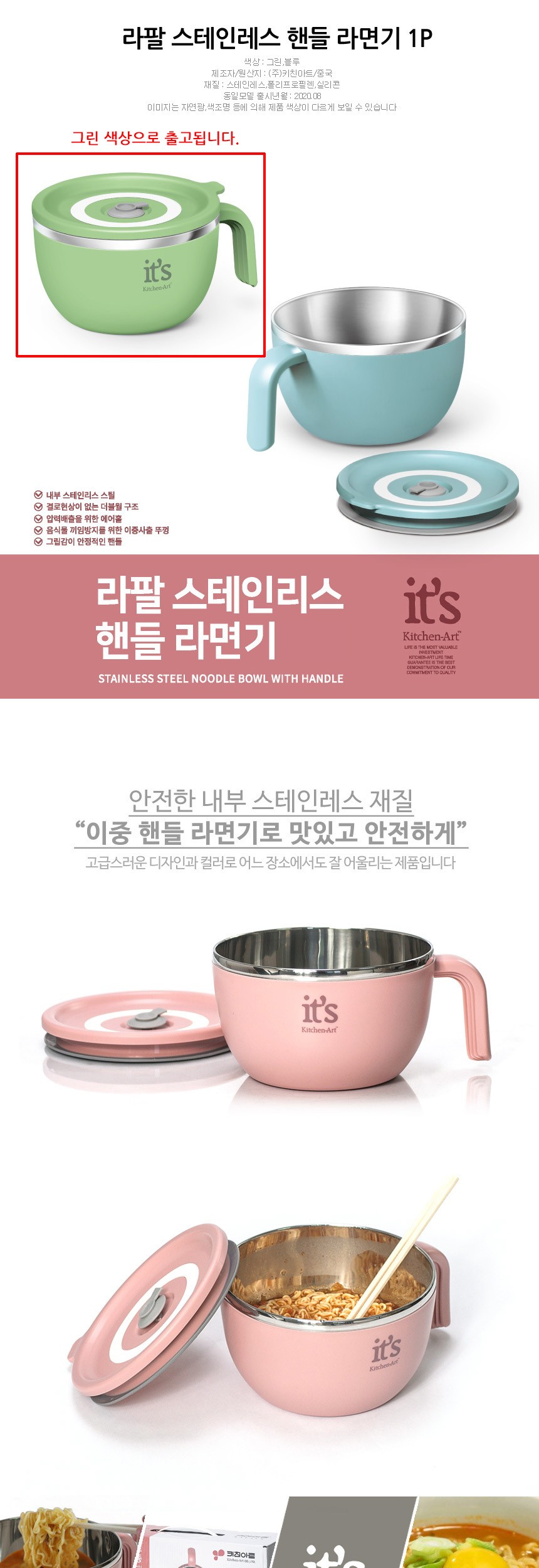 키친아트 면기 라팔 스텐 핸들 라면기 그린