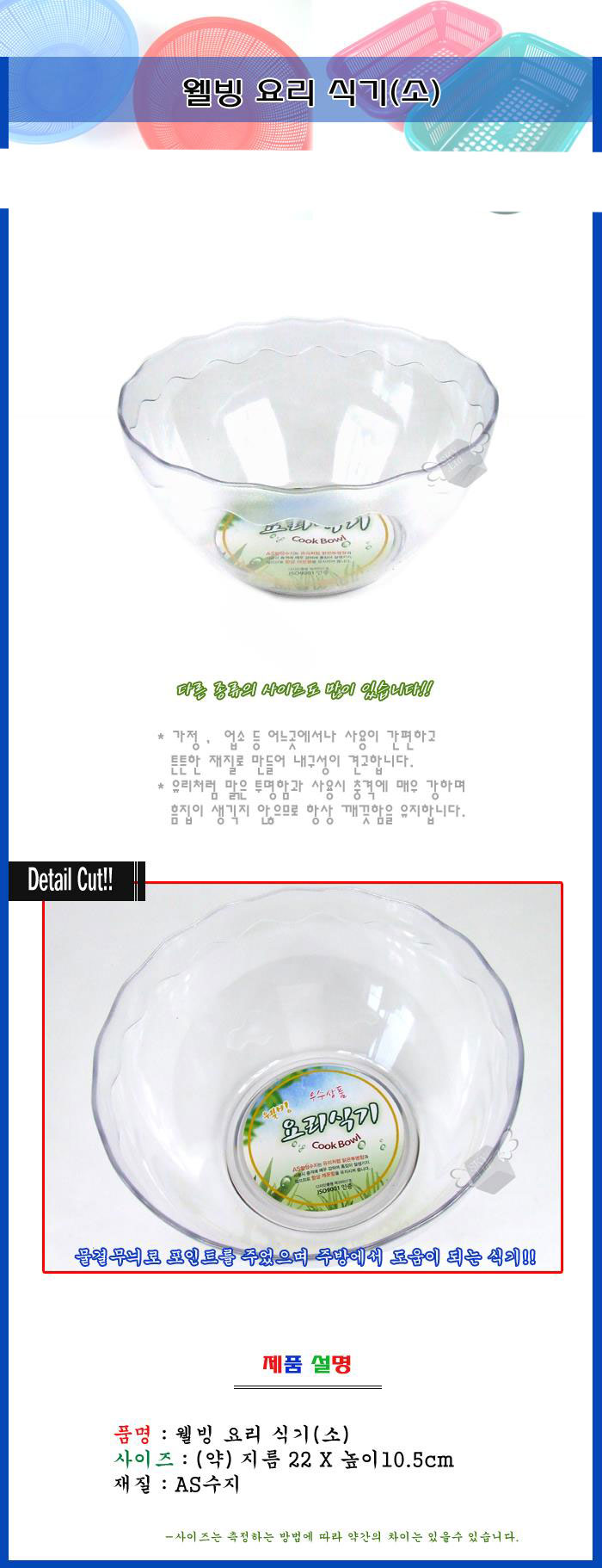 물결무늬 투명 요리식기 소형 홈베이킹 요리볼 비빔볼 이미지/