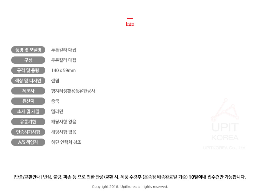 • 초기제품 이상의 경우 동일한 제품으로 1:1 교환원칙, 사용후 제품이상은 A/S를 원칙으로 합니다.