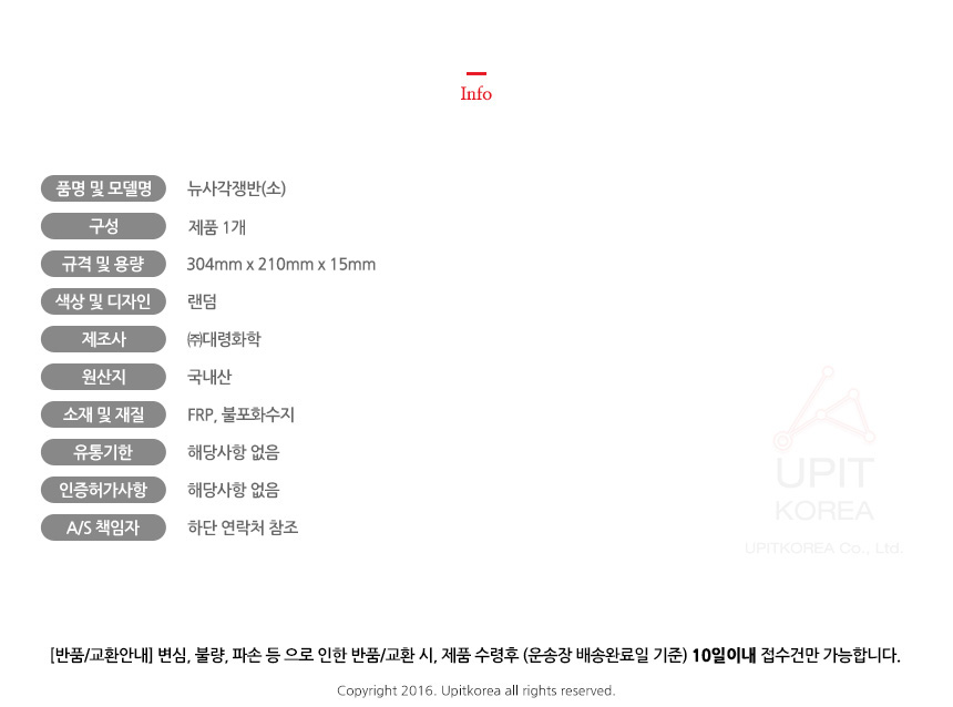 • 반품/환불조건: 도착후 1주일 이내 사용하지 않은 상태에서 가능합니다,초기제품 이상의 경우 동일한 제품으로 1:1 교환원칙, 사용후 제품이상은 A/S를 원칙으로 합니다,
