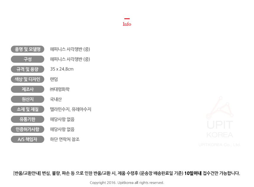 • 반품/환불조건: 도착후 1주일 이내 사용하지 않은 상태에서 가능합니다,초기제품 이상의 경우 동일한 제품으로 1:1 교환원칙, 사용후 제품이상은 A/S를 원칙으로 합니다,