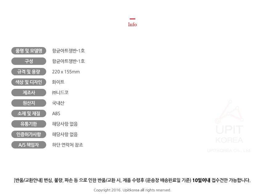 • 초기제품 이상의 경우 동일한 제품으로 1:1 교환원칙, 사용후 제품이상은 A/S를 원칙으로 합니다.