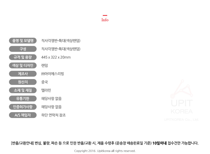 • 반품/환불조건: 도착후 1주일 이내 사용하지 않은 상태에서 가능합니다,초기제품 이상의 경우 동일한 제품으로 1:1 교환원칙, 사용후 제품이상은 A/S를 원칙으로 합니다,