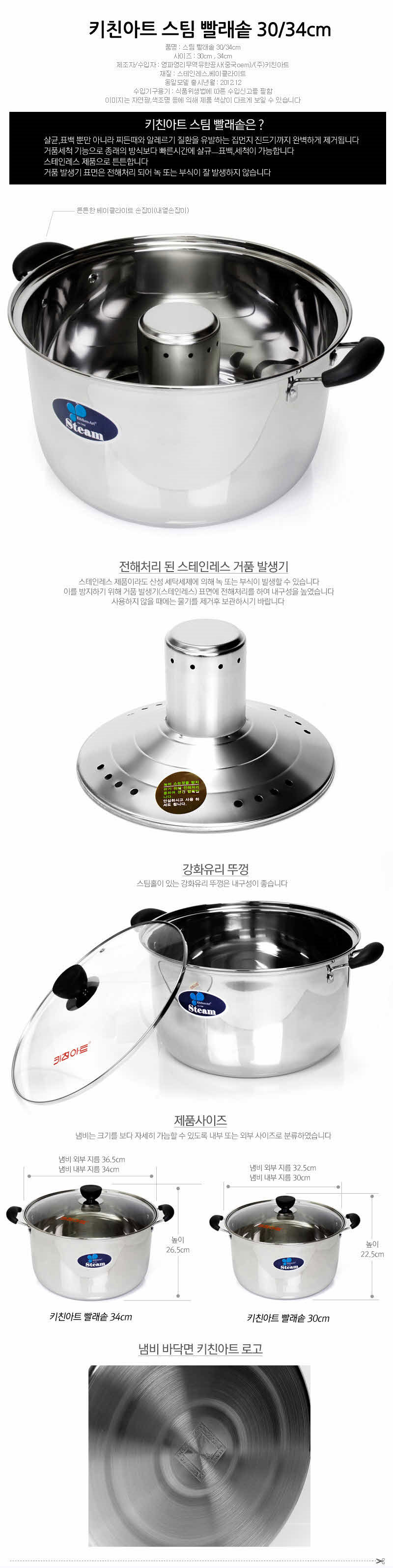 키친아트 냄비 빨래솥 스팀 빨래솥 34cm 이미지/