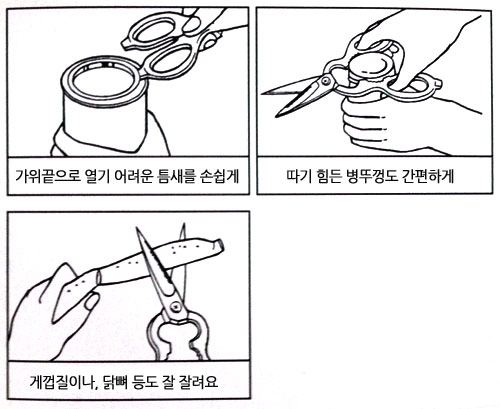 가위 끝으로 틈새도 열 수 있고, 병 오프너 기능도 있어 편리합니다.