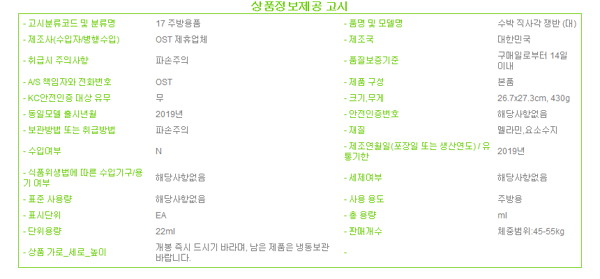 제조자 상품상세설명에 표기