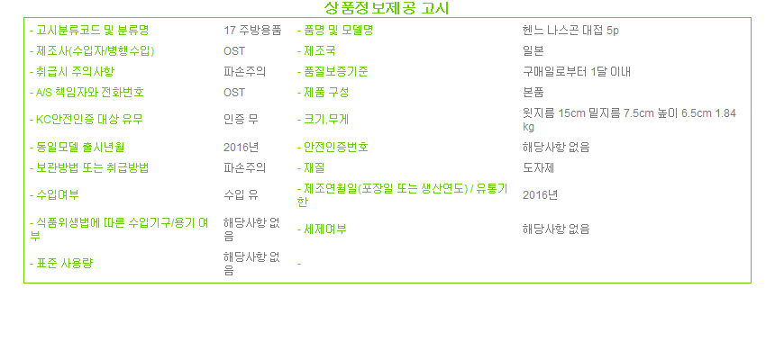 제조자 상품상세설명에 표기