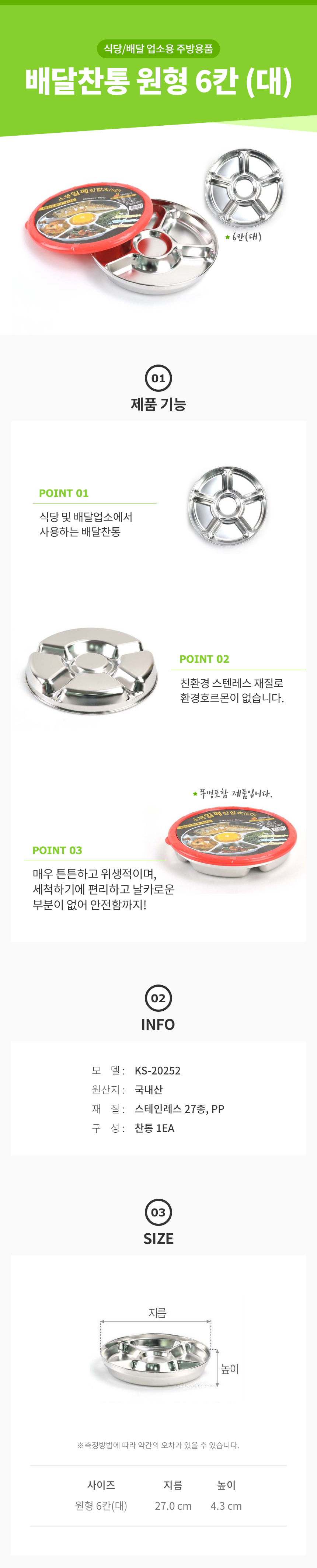찬통 원형 6칸 대형 반찬통 찬합 배달용 업소용 주방