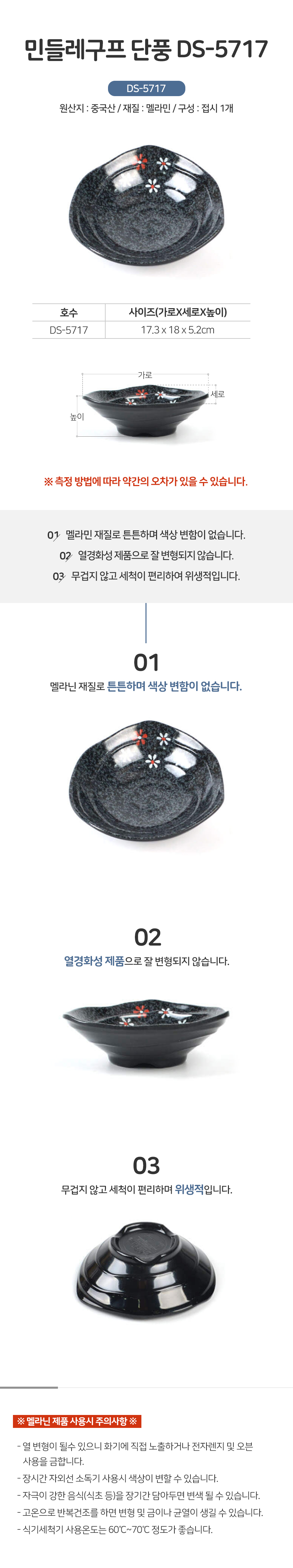 민들레 구프 DS-5717 멜라민 그릇 찬기 접시 업소용