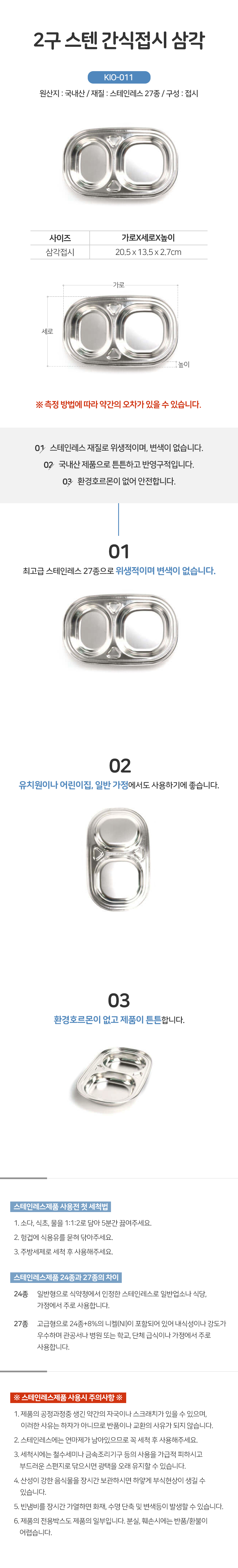 2구 스텐 간식 접시 삼각 스테인레스 유치원 캠핑