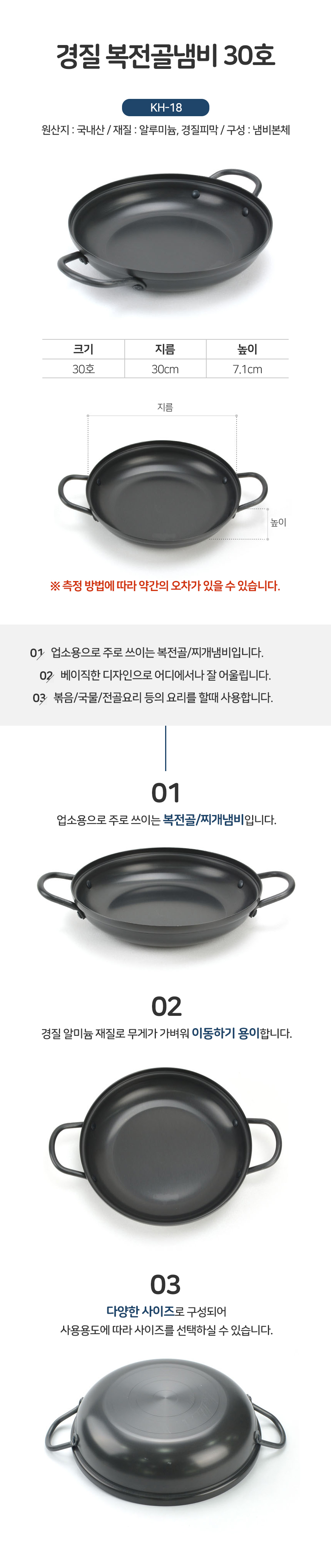 경질 복전골 냄비 30호 찌개 양수 볶음