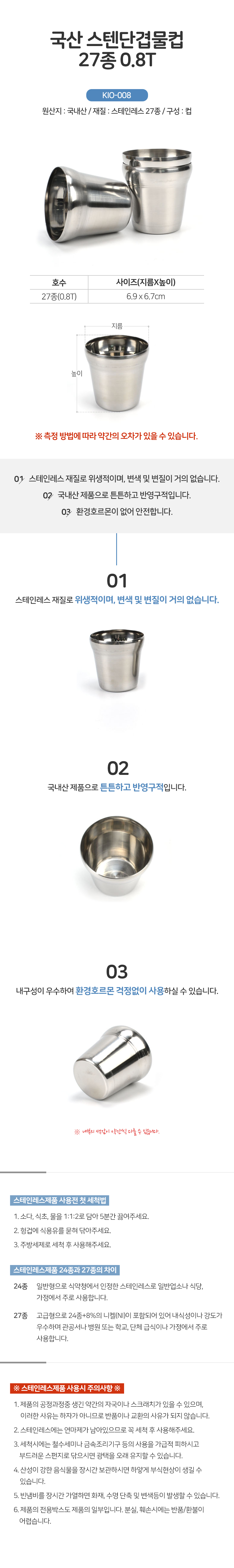 국산 스텐 단겹 물컵 27종 0.8T 스테인레스 식당