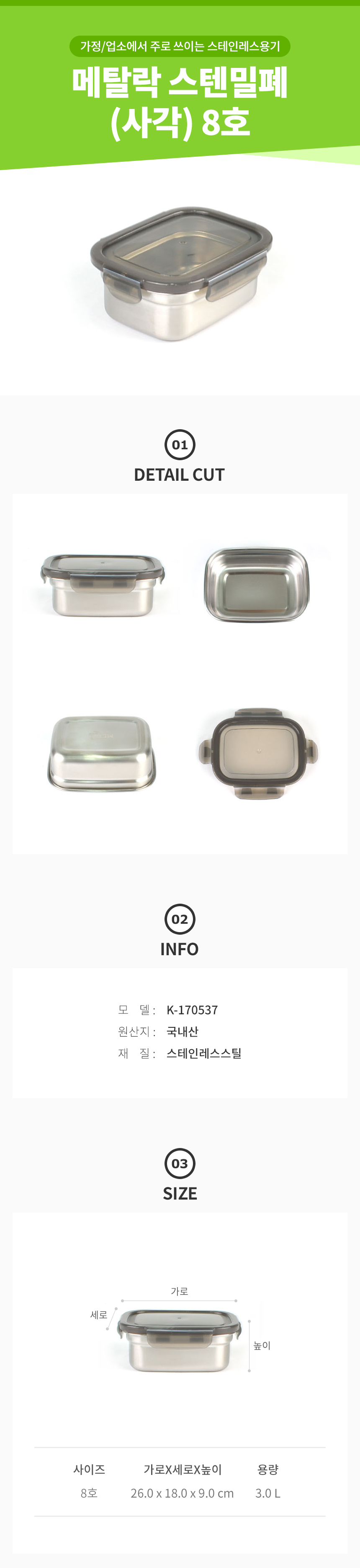 스텐 밀폐 사각 8호 스테인레스 저장용기 김치통 이미지/