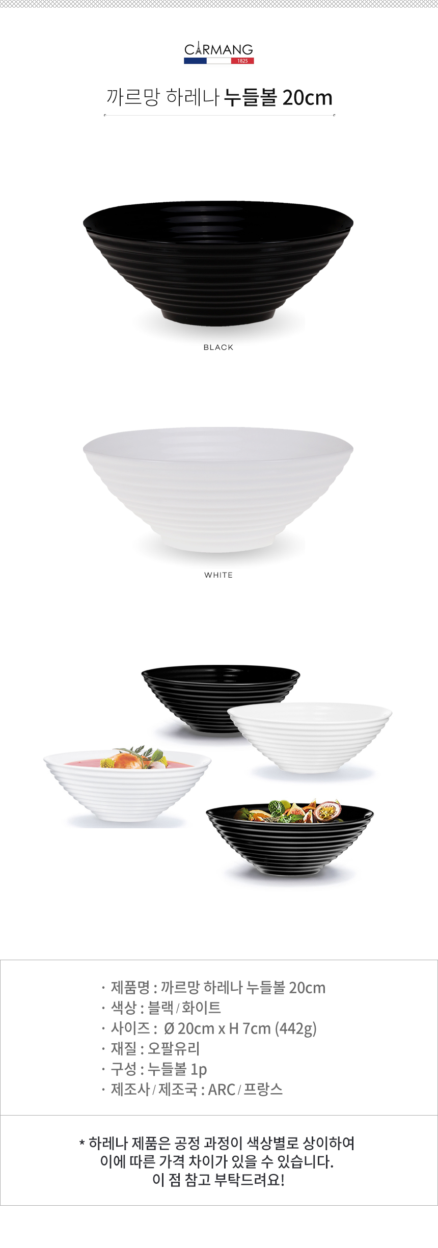 까르망 하레나 식기 누들볼 화이트 블랙 그레이 20cm 프랑스 수입 예쁜그릇 이미지/
