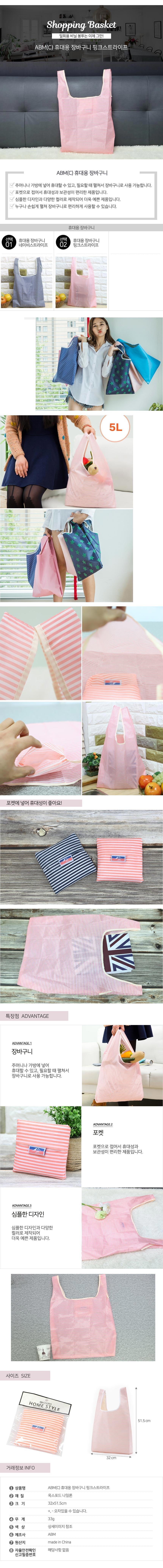 장바구니 휴대용 휴대용시장가방 핑크스트라이프