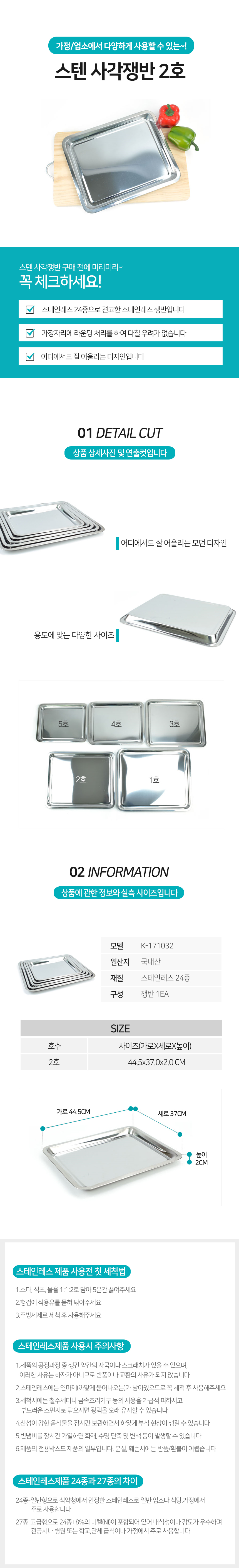 스텐 사각 쟁반 2호 주방용품 업소용 주방도구 이미지/