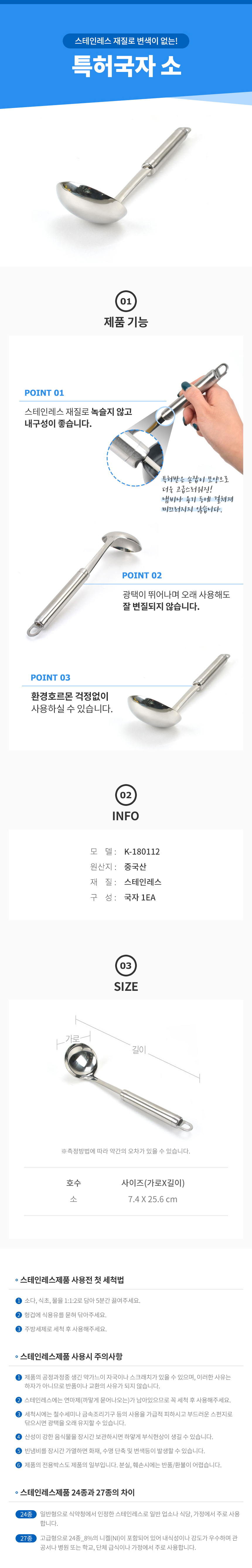 국자 소형 업소용 다용도 통국자 급식 주방용품 이미지/