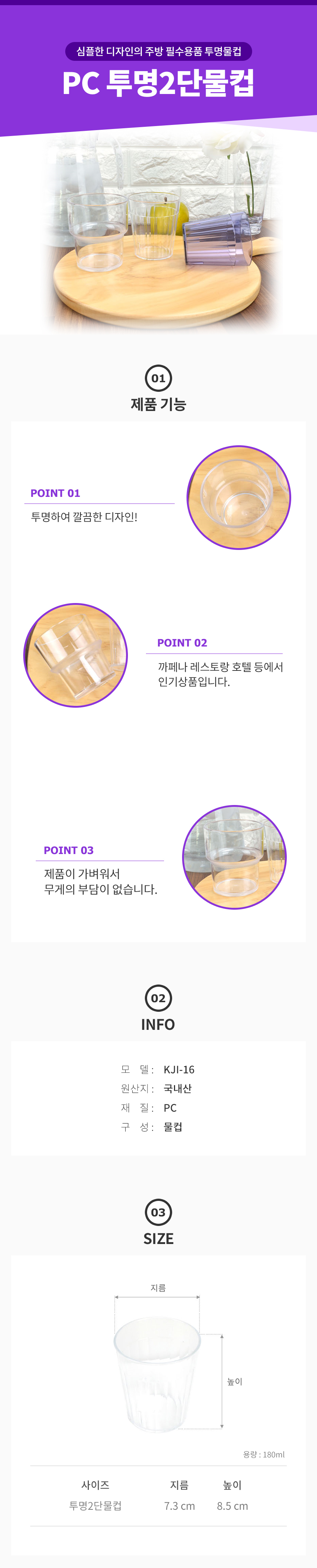투명 2단 물컵 카페 레스토랑 식당 업소용 이미지/