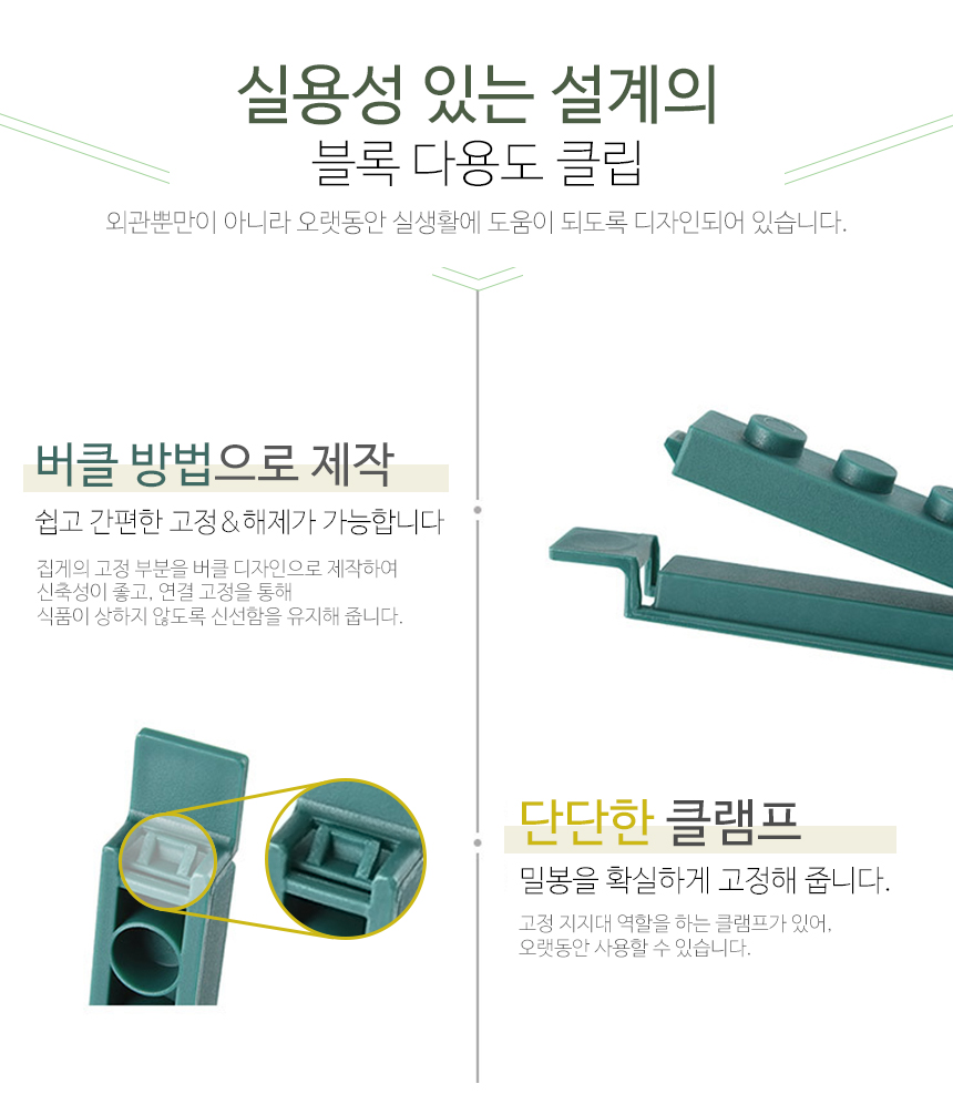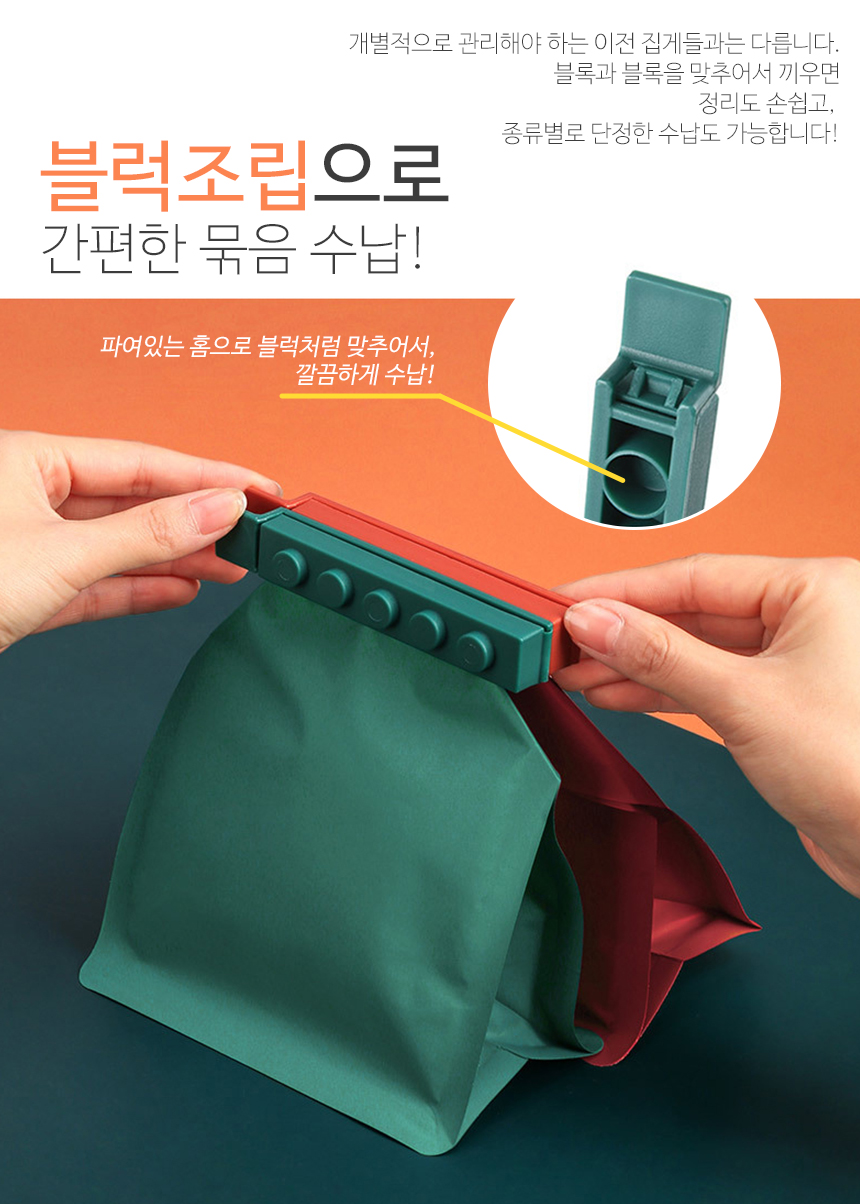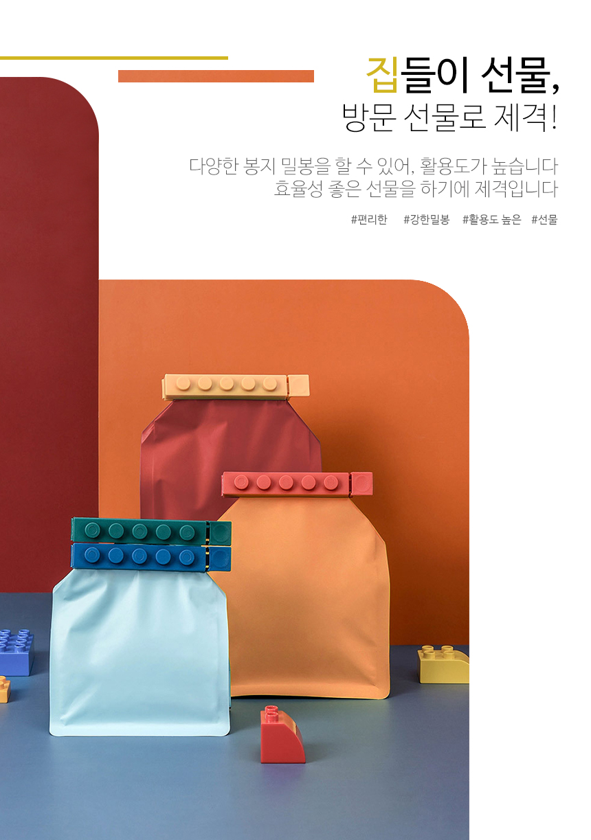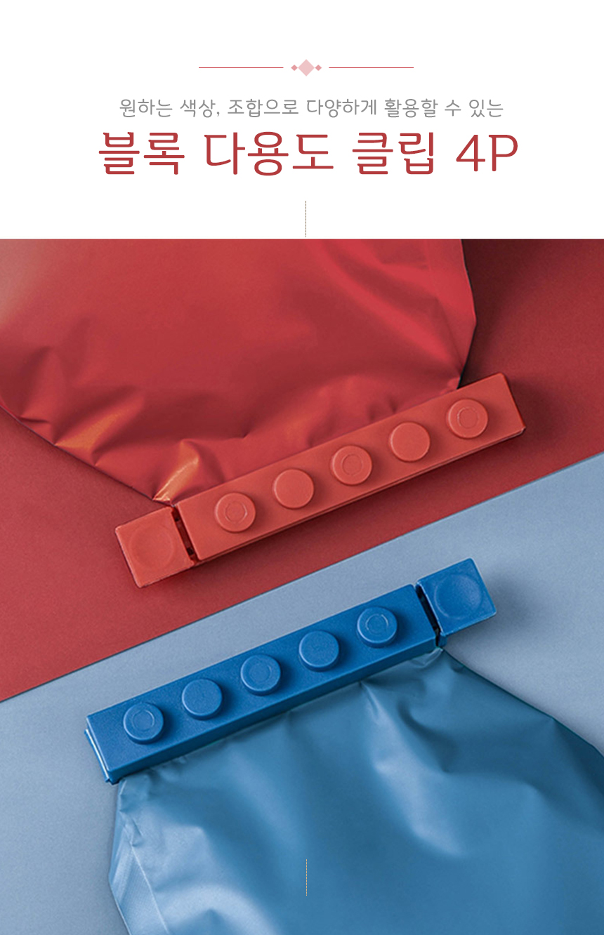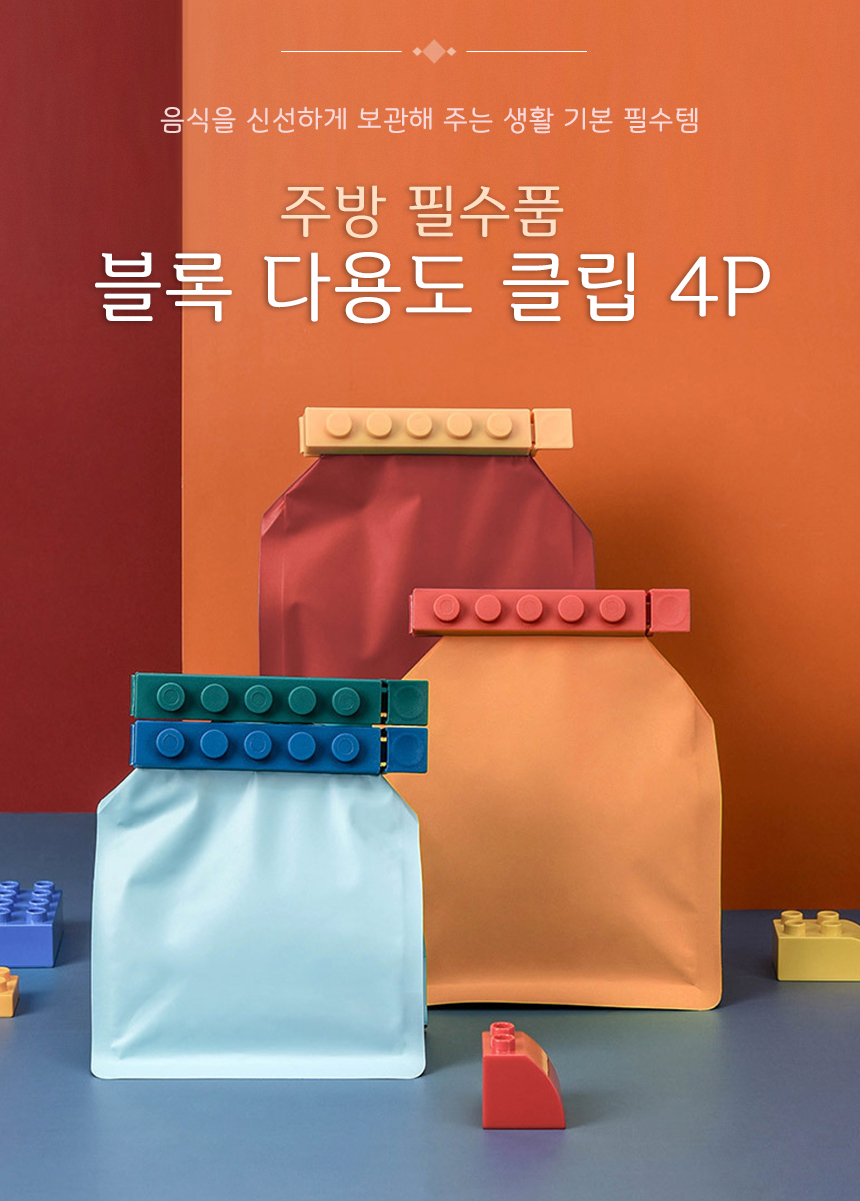 다용도집게 봉지집게 4P 신박한 블럭 밀봉 봉지클립 밀폐클립 이미지/