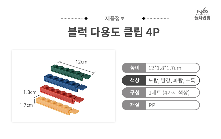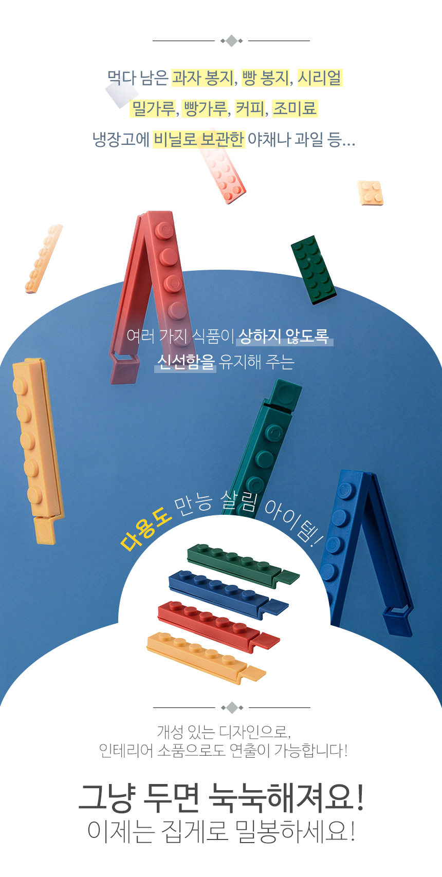 다용도집게 봉지집게 4P 신박한 블럭 밀봉 봉지클립 밀폐클립