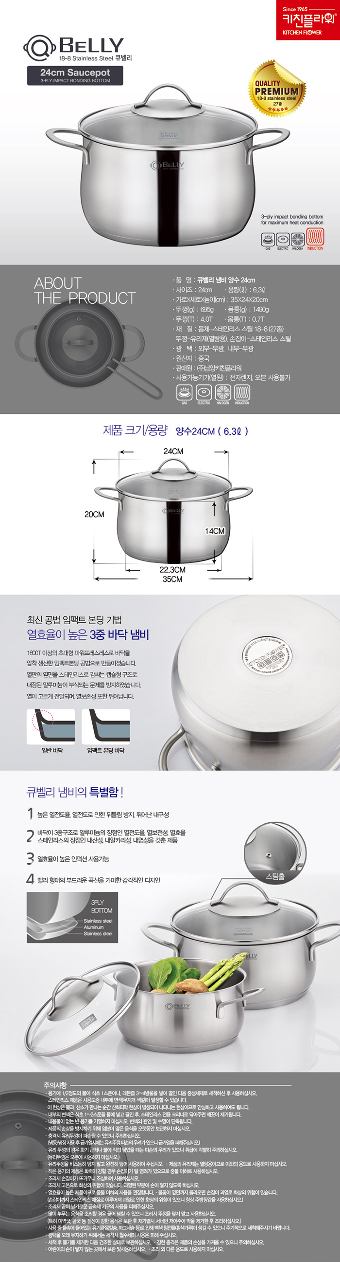 키친플라워 큐벨리 3중바닥 양수24(인덕션)다용도냄비