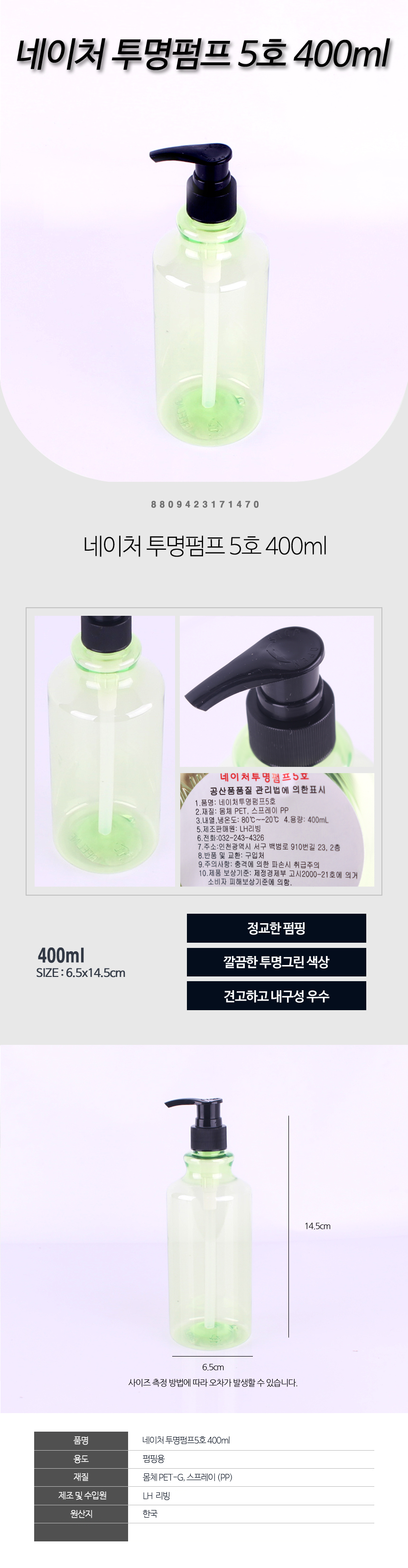 네이처 투명 펌프 5호 분무기