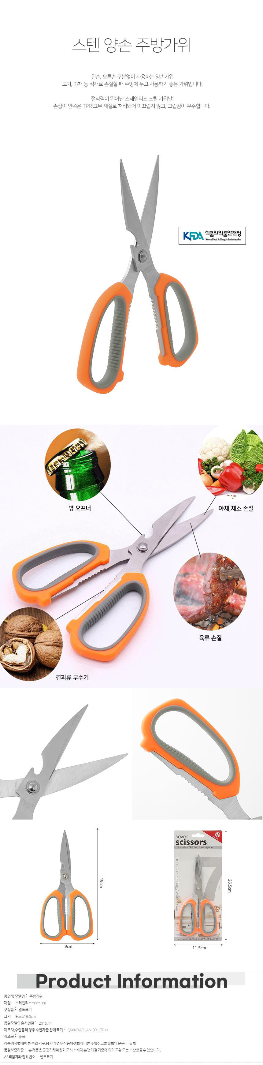 <상품명 : 다용도 만능 스텐 양손 주방가위 오렌지x5개 고기가위>