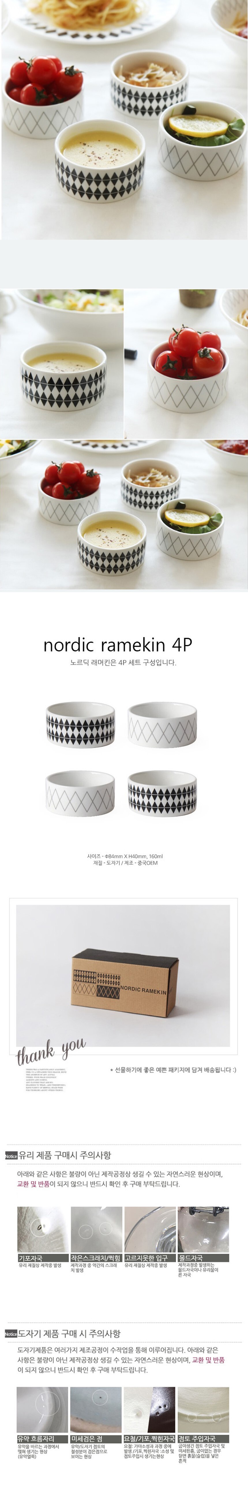 다용도 찬기 수프 과일 선물 북유럽풍 4P 반찬 주방