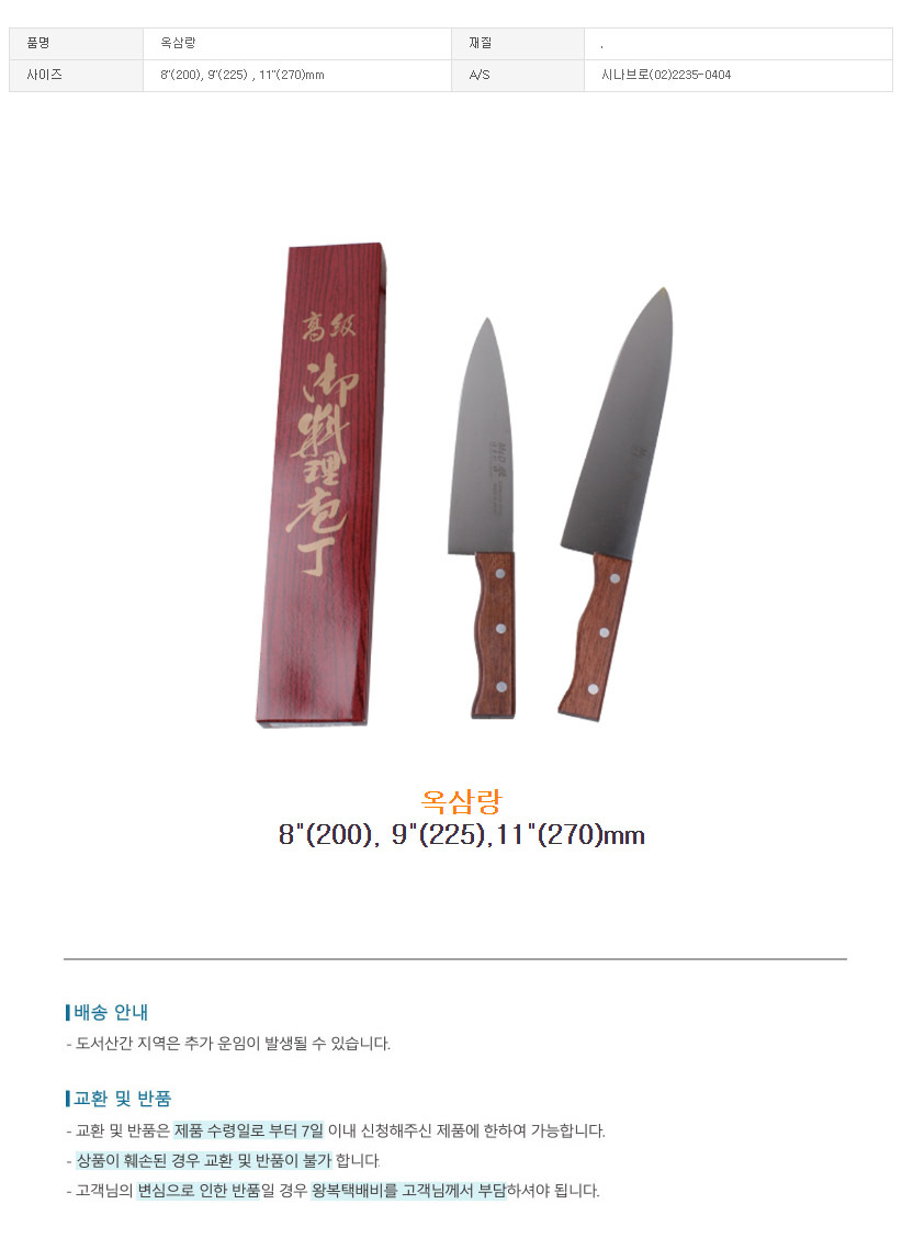 식칼 주방칼 일본산 옥삼랑 요리칼 3size 다용도 이미지/