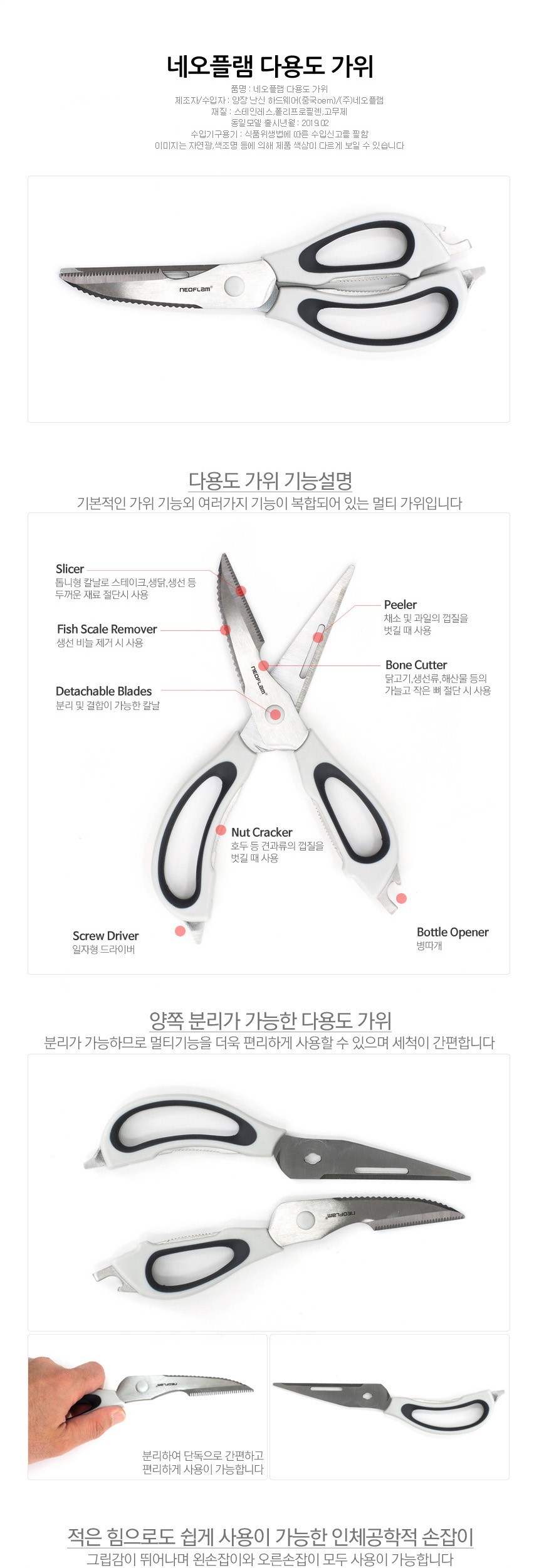 네오플램 주방가위 분리형 필러 고기 다용도 멀티기능 이미지/