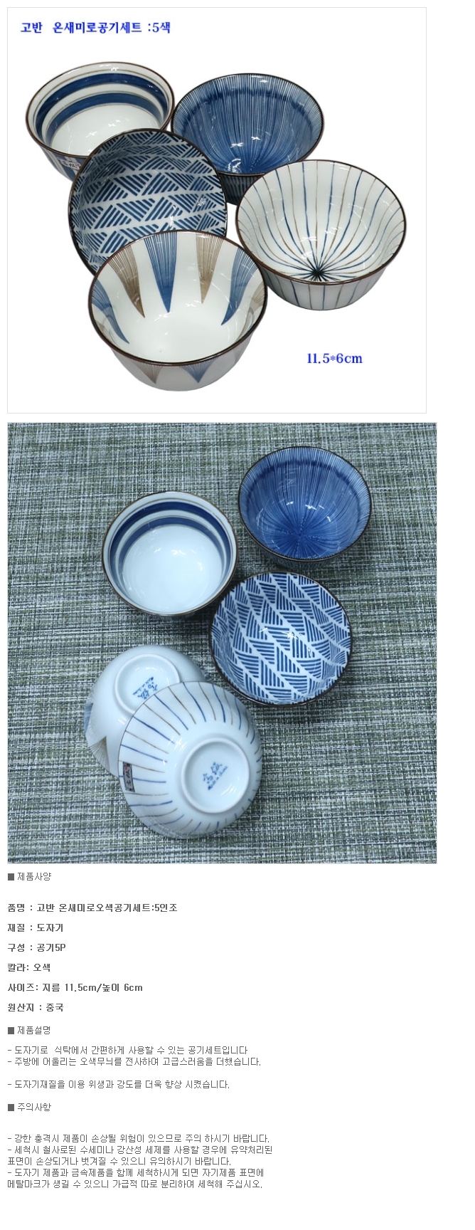 고반 공기 밥공기 밥그릇 그릇 찬기 식기 세트 5P