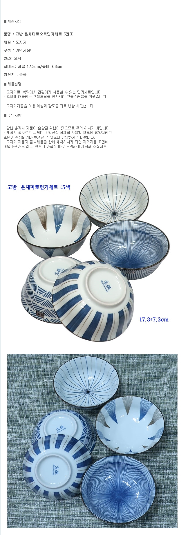 고반 면기 탕기 대접 국그릇 찬기 식기 세트 5P