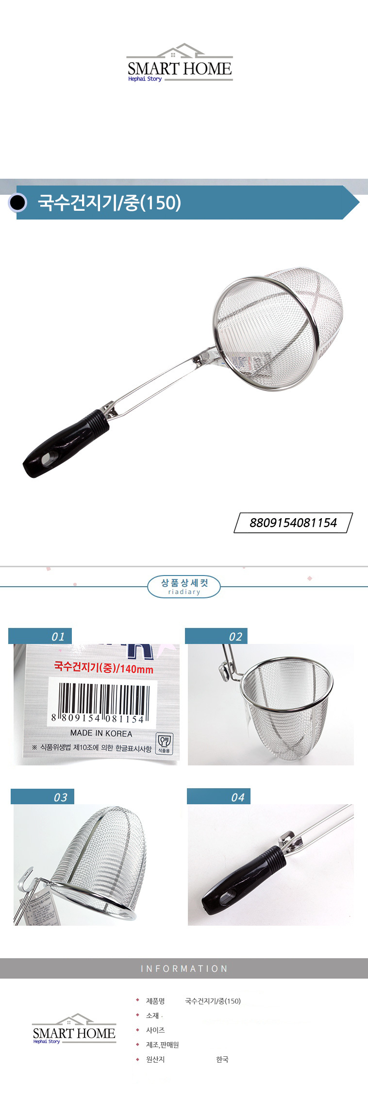 주방용 스텐레스건지기 국수 건지기 중(150) 이미지/