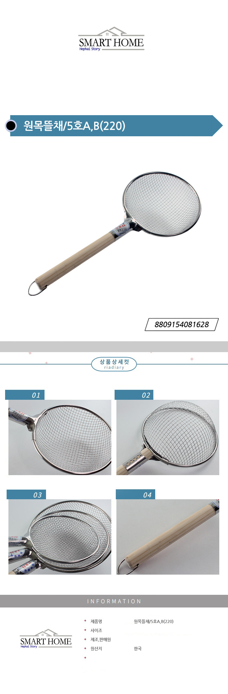 스텐레스소재 원목 뜰채 5호AB(220)