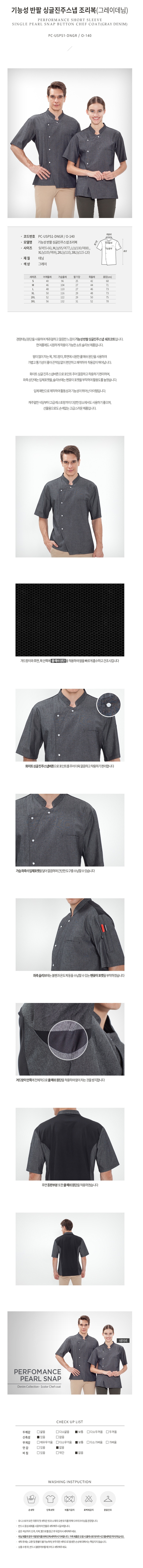 싱글진주 조리복 그레이 데님 요리사 쉐프 주방가운