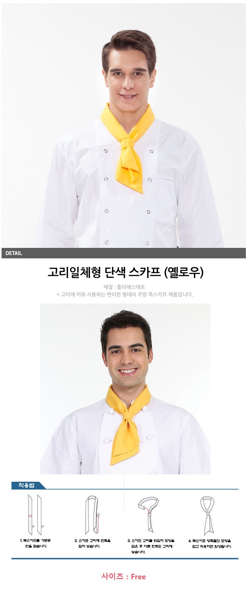 고리일체형 단색 스카프 옐로우 쉐프 조리사 요리사